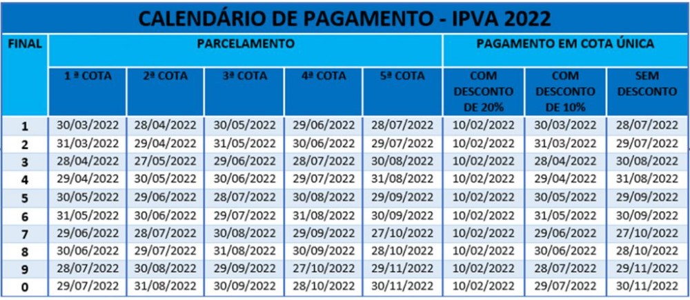 Com o objetivo de proteger os proprietários de veículos dos efeitos da inflação, o Governo do Estado ampliou os percentuais de descontos e o número de parcelas para pagamento do IPVA 2022. No caso do pagamento antecipado, até 10 de fevereiro, o abatimento passou de 10% para 20%. Também foi dobrado o desconto para pagamento integral até a data da primeira cota, que mudou de 5% para 10%. Além disso, o parcelamento também foi ampliado, já que tradicionalmente o contribuinte baiano podia parcelar o imposto em três vezes.