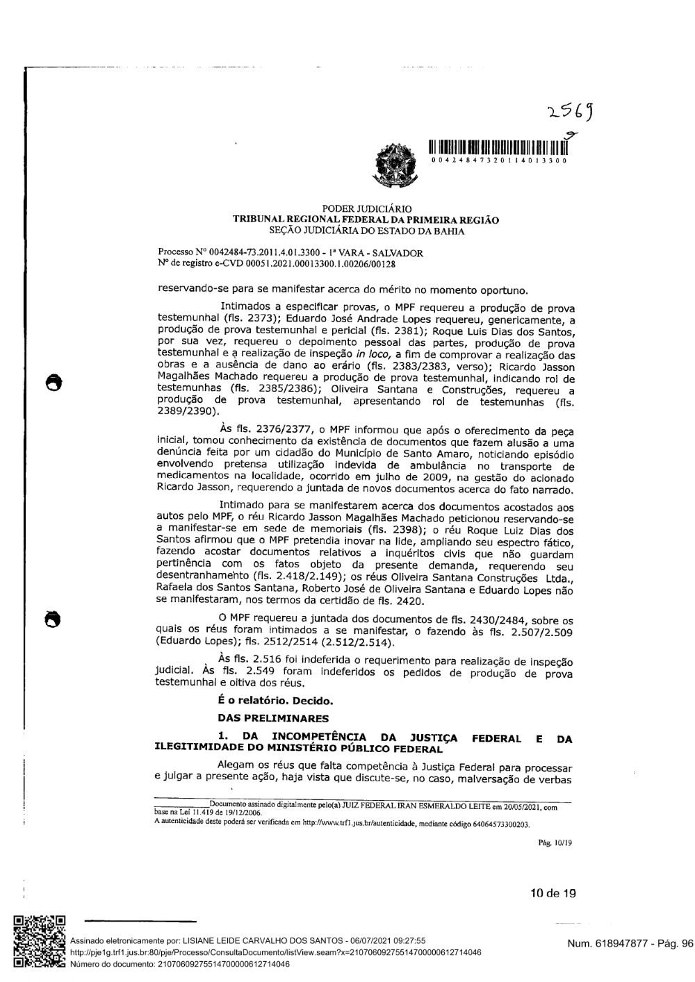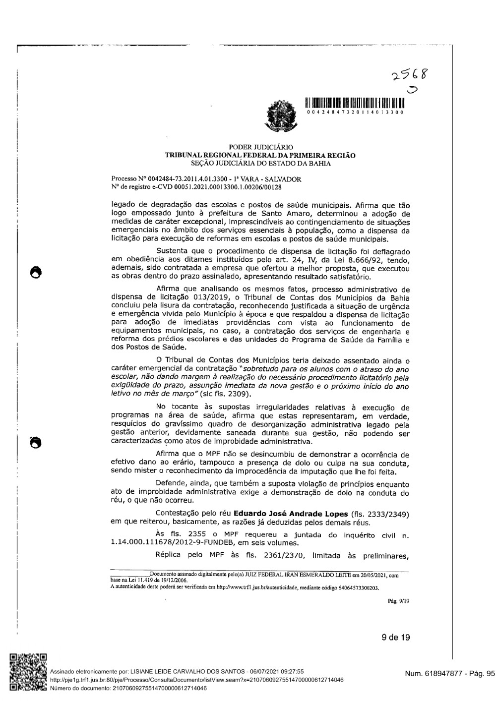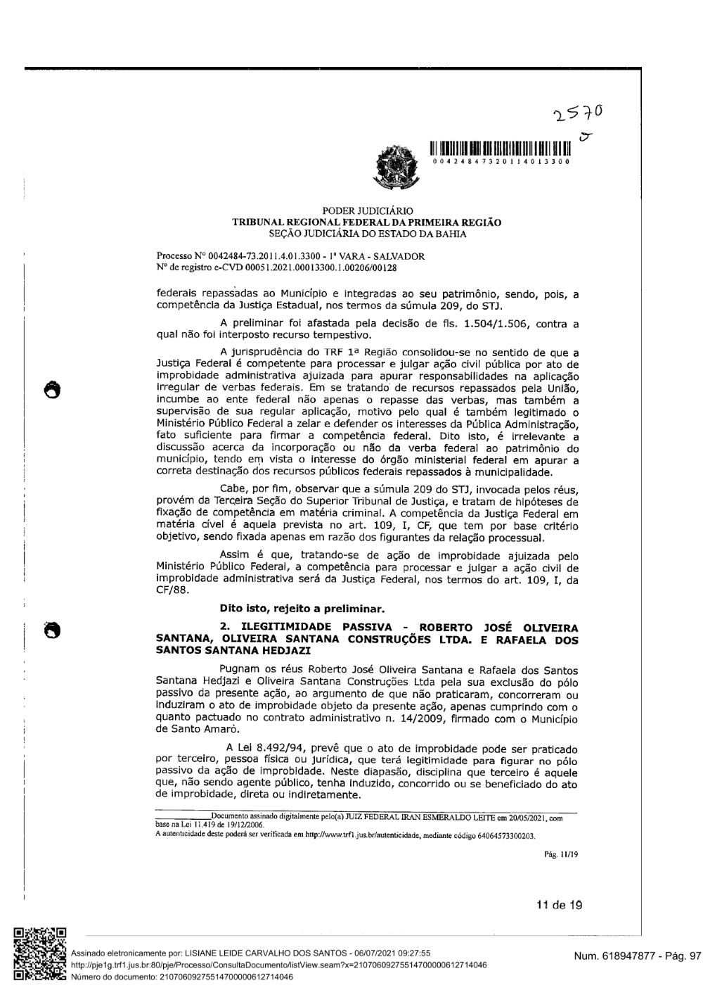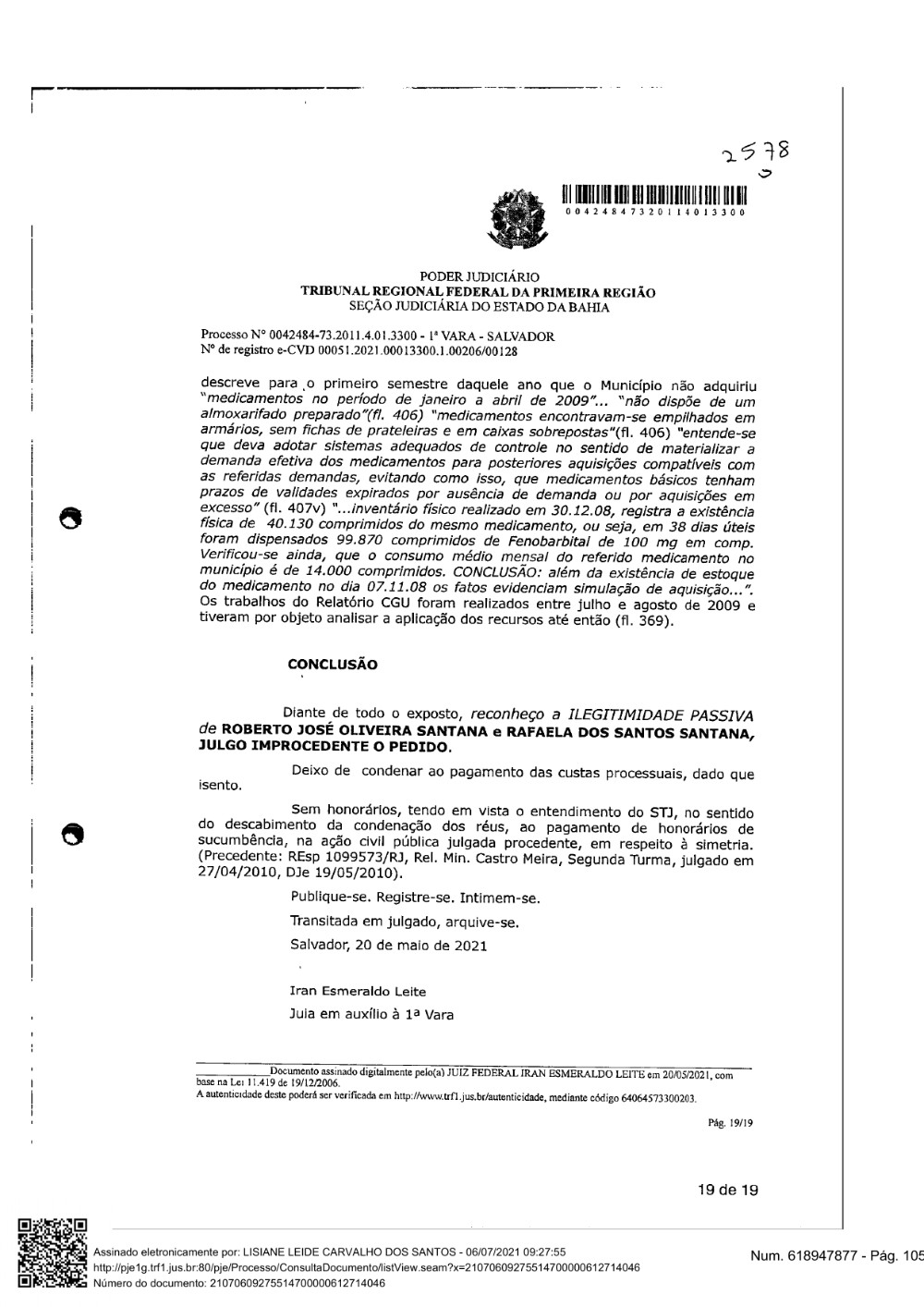 Mais uma denúncia contra o ex-prefeito de Santo Amaro da Purificação, Ricardo Machado, foi arquivada pela Justiça. Trata-se da Ação Civil Pública de Improbidade Administrativa proposta pelo Ministério Público Federal sobre “graves irregularidades, qualificáveis como atos de improbidade envolvendo o repasse de recursos federais oriundos dos Ministério da Educação e Saúde. O juiz Iran Esmeraldo Leite, em auxílio a 1ª Vara, julgou como improcedente o pedido de reconhecendo a ilegitimidade passiva.