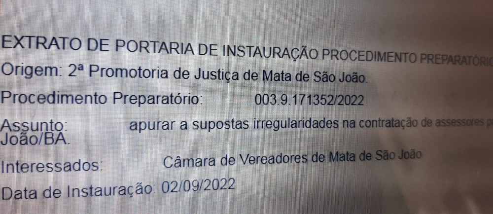 O Ministério Público (MP) decidiu apurar denúncia de supostas irregularidades na contratação de assessores para a Câmara de Vereadores de Mata de São João.