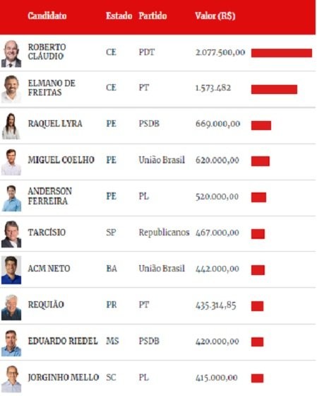 O levantamento foi feito com base em informações do Tribunal Superior Eleitoral (TSE), que constatou que os cinco candidatos que mais aplicaram verba para aumentar o alcance de posts são do Nordeste, sendo dois do Ceará e três de Pernambuco.