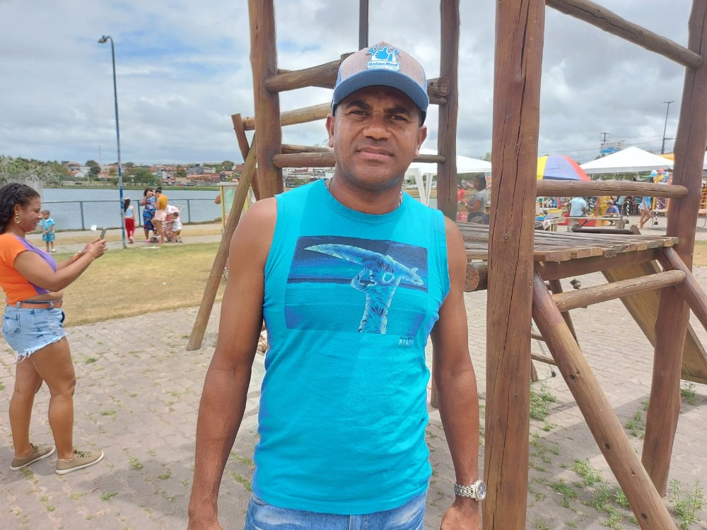 Gilson Rodrigues levou a sua família para a Lagoa Grande para curtir o Dia das Crianças, mesmo com o tempo nublado. "As pessoas estão chegando aos poucos agora queno sol está saindo. Trazemos as nossas crianças para passar um dia diferente. É isso que podemos fazer por eles", disse, com seu filho de sete anos que estava se divertindo no local.