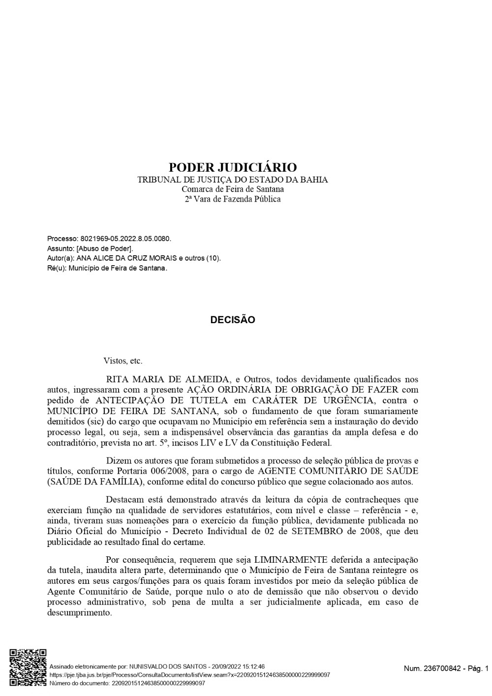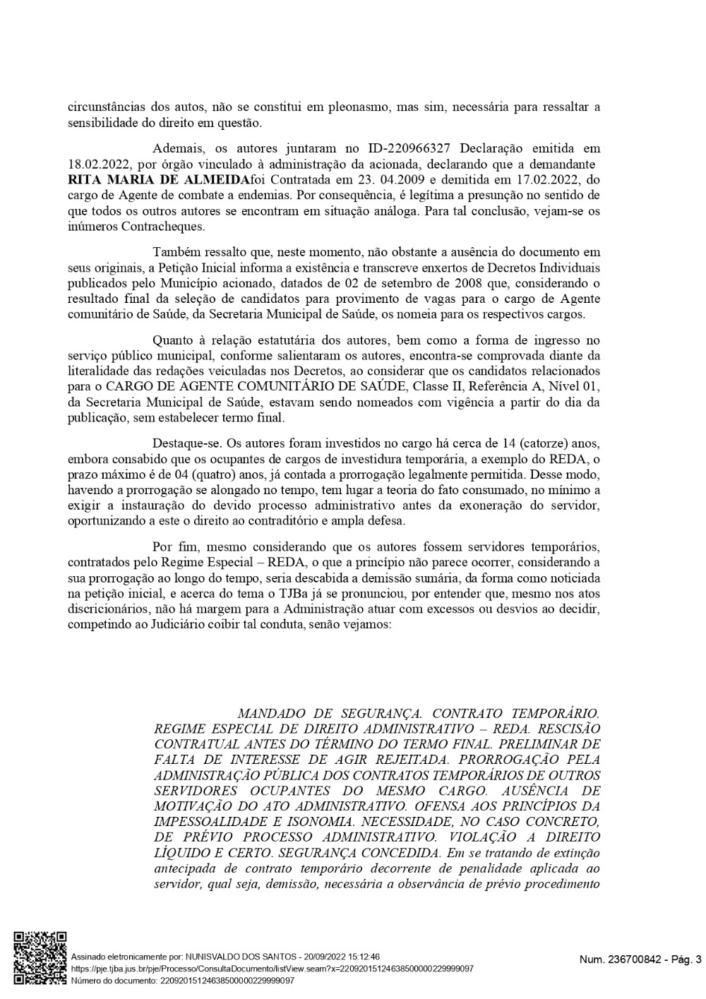 Ele diz ainda que as partes informaram equivocadamente ao juiz que haveria um tipo de concurso que não se sustenta com a intenção de fazer valer um REDA que já durava a dez anos, o que não existe em lei. “Os profissionais foram demitidos por recomendação do próprio Ministério Público da Bahia. Nós analisamos e demos um parecer na ocasião recomendado o cumprimento da recomendação do MP”.