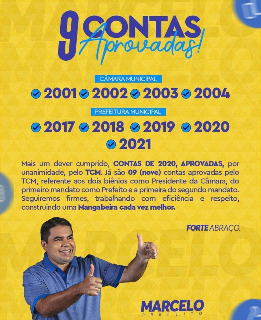 O Tribunal Contas dos Municípios da Bahia (TCM) aprovou mais uma vez as contas da prefeitura de Governador Mangabeira. As contas são referentes ao exercício de 2021. Ao todo, a gestão do prefeito Marcelo Pedreira teve 9 contas aprovadas, na Câmara Municipal e na prefeitura.