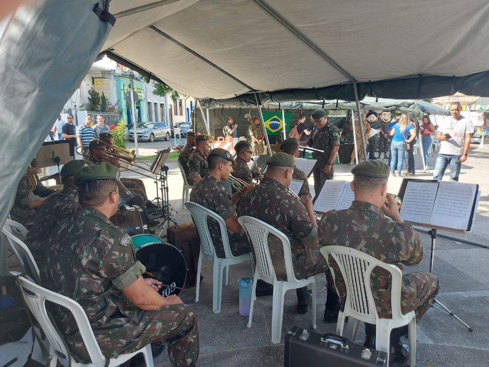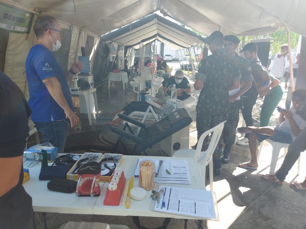 Foi realizada ainda uma ação cívico-social com serviços para a comunidade. O espaço contou ainda com um estande militar, com materiais utilizados no dia a dia dos soldados.