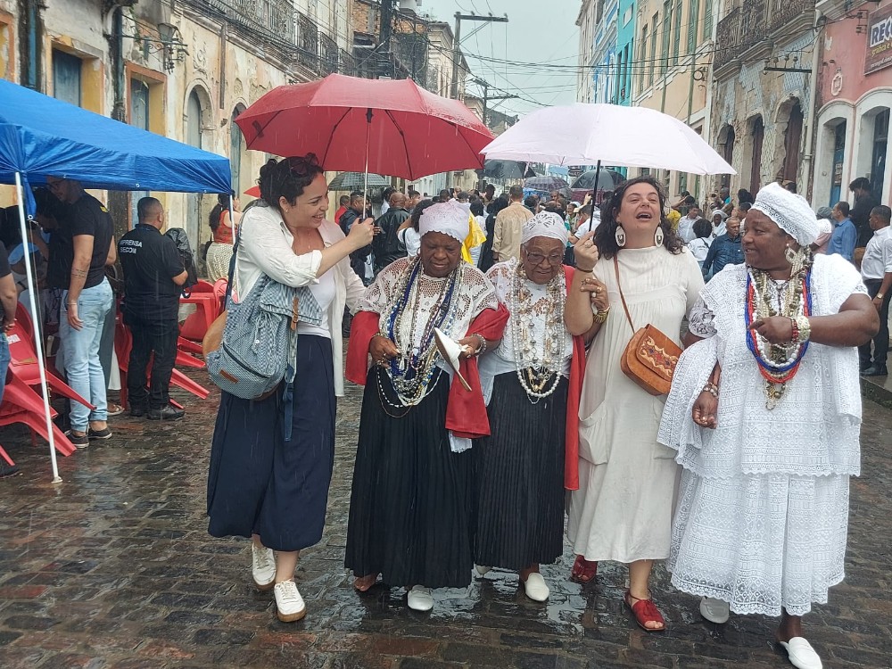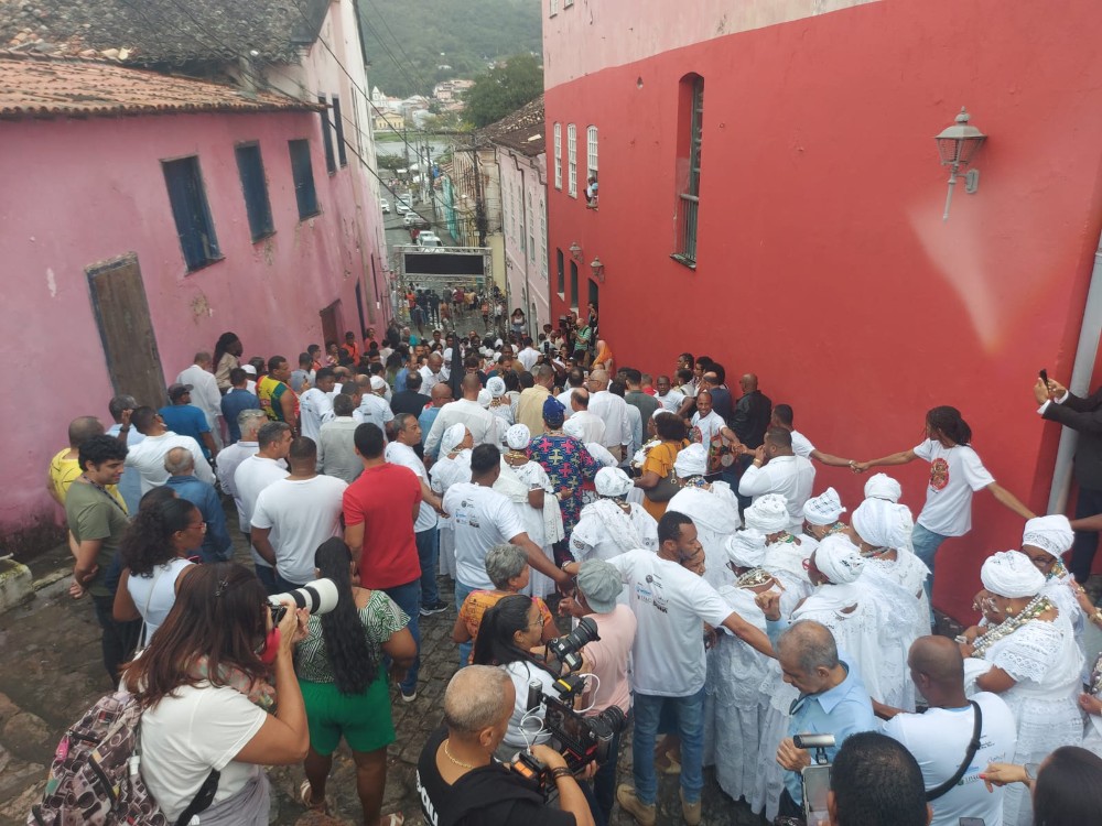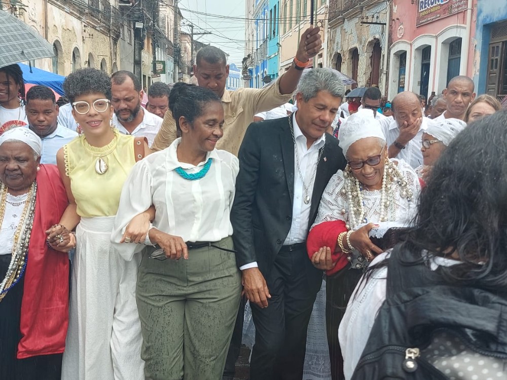 Jerônimo destaca que tem suas origens com o povo negro e indígena e como governador tem a chance de ajudar a reparar o que muitos dos governantes federais e estaduais deixaram de fazer. “Vim também receber as bênçãos, agradecer esse primeiro semestre de luta, de sucesso e pedir que os orixás que iluminam a irmandade possam proteger o nosso presidente Lula, os nossos ministros, os nossos deputados federais e estaduais. Vim pedir por esse povo que dedica a sua vida a defender os direitos, a fazer no dia a dia, seja na Assembleia, seja na Câmara de Vereadores, seja como secretário municipal”. O governador disse que essas senhoras que caminham pelas ruas da cidade nesse dia carregam a fé, a nossa cultura, a nossa história e a nossa ancestralidade.