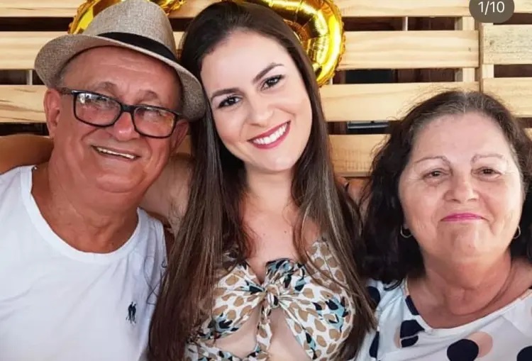 Médica com os pais Toninho e Eleny, professores aposentados - Foto: Arquivo pessoal