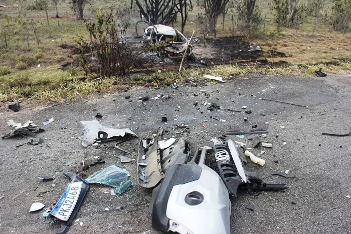 Carro da médica se desintrgrou antes de descer a ribanceira e pegar fogo - Foto: Raimundo Mascarenhas