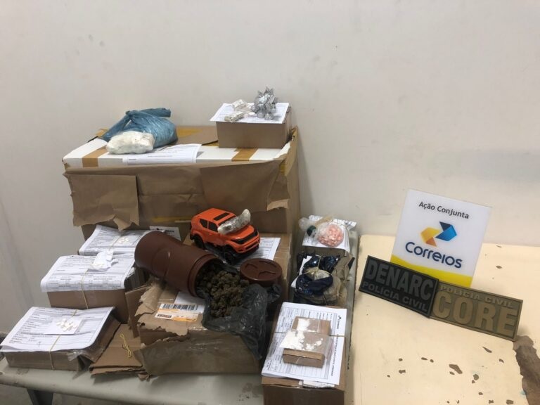 Diversas porções de cocaína, haxixe, maconha, êxtase e drogas sintéticas foram apreendidas na manhã desta quinta-feira (1º), durante mais uma fase da ‘Operação Correios’, realizada pelo Departamento Especializado de Investigação e Repressão ao Narcotráfico (Denarc), com auxílio dos cães do Canil da Coordenação de Operações e Recursos Especiais (Core).