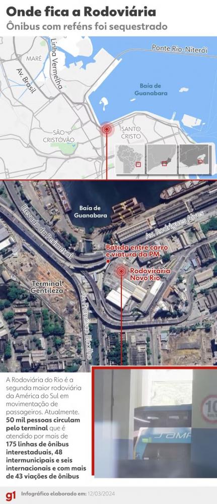 Um criminoso invadiu um ônibus da Viação Sampaio, na Rodoviária do Rio, no Centro, e fez 17 reféns, incluindo crianças e idosos, e disparos na tarde desta terça-feira (12).