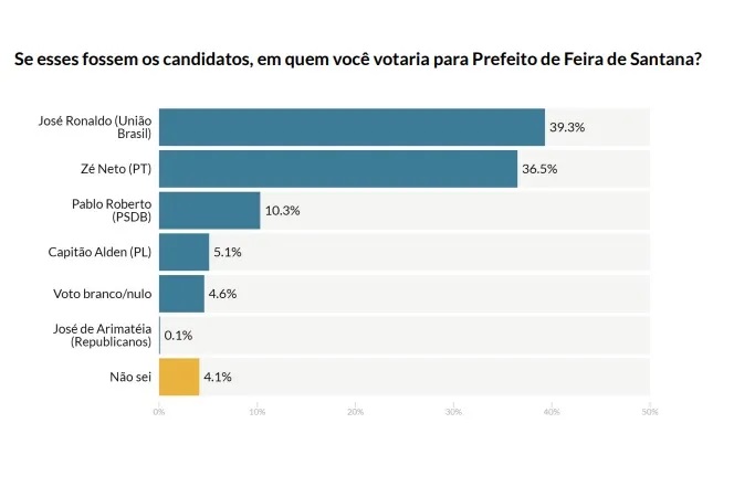 No entanto, as negociações políticas podem interferir nesse cenário. Se Capitão Alden já declarou seu apoio a José Ronaldo, Pablo Roberto, que se apresenta como terceira via, pode ser o fiel da balança. O tucano já se declarou aberto a apoios e nos últimos dias o governador Jerônimo Rodrigues tem feito acenos para sinalizar disposição de dialogar.