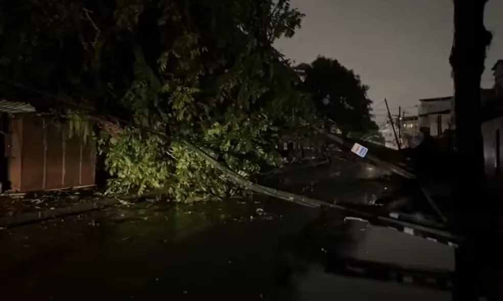 Árvore caiu no Barbalho e destruiu parte da rede elétrica do bairro na noite desta terça-feira (11). — Foto: Reprodução/Redes sociais