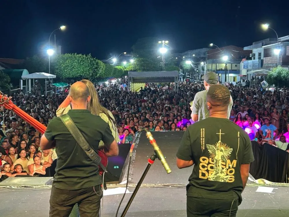 Antes do show principal, o público acompanhou a apresentação da banda feirense Soul de Deus, que aqueceu os fiéis para a noite de celebração. A praça ficou completamente tomada por moradores e visitantes vindos de diversas cidades da região e de outros municípios baianos.