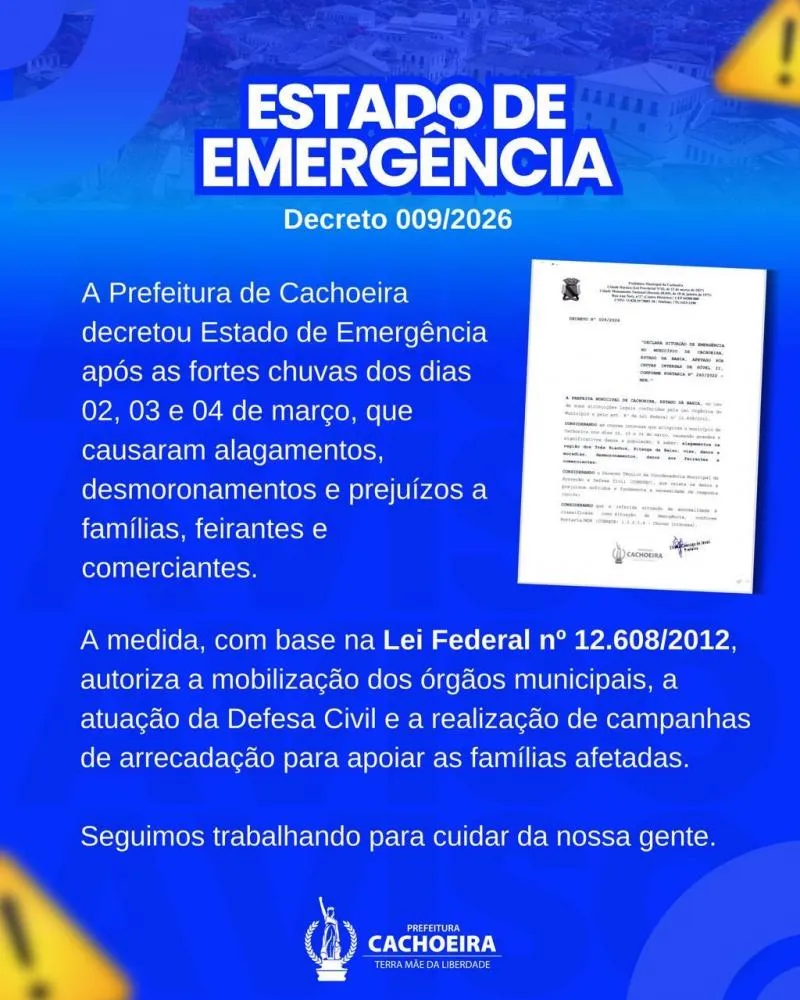 Na tarde desta quarta-feira (4), a Prefeitura anunciou que estava decretando Estado de Emergência na cidade. Veja o decreto abaixo: