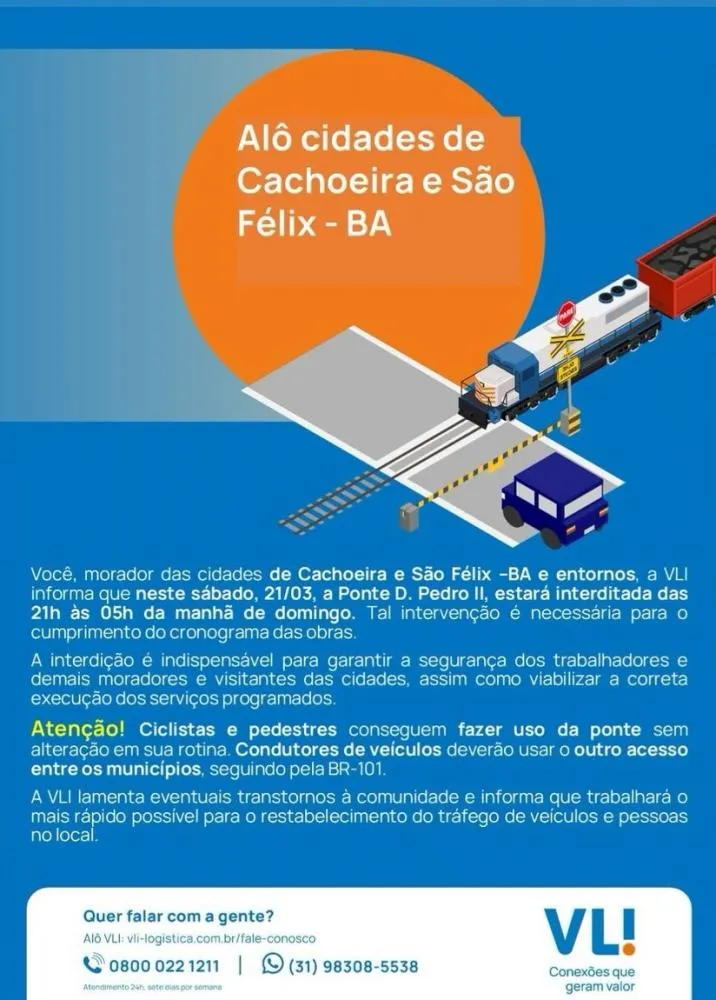 Recôncavo Baiano Ponte Dom Pedro II será interditada para veículos neste sábado (21) entre Cachoeira e São Félix