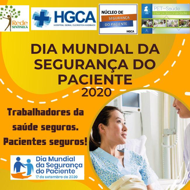 Com o tema “Segurança do trabalhador da saúde: uma prioridade para a segurança do paciente” o Hospital Geral Clériston Andrade (HGCA), através do Núcleo de Segurança do Paciente (NSP/HGCA), realiza nesta quinta-feira (17), atividades em alusão ao ‘Dia Mundial de Segurança do Paciente’, 17 de setembro, que tem como representação a cor laranja. A campanha preconizada pela Organização Mundial da Saúde (OMS), neste ano, devido aos desafios com a pandemia do coronavírus, definiu como slogan “Trabalhadores da saúde seguros, pacientes seguros”.