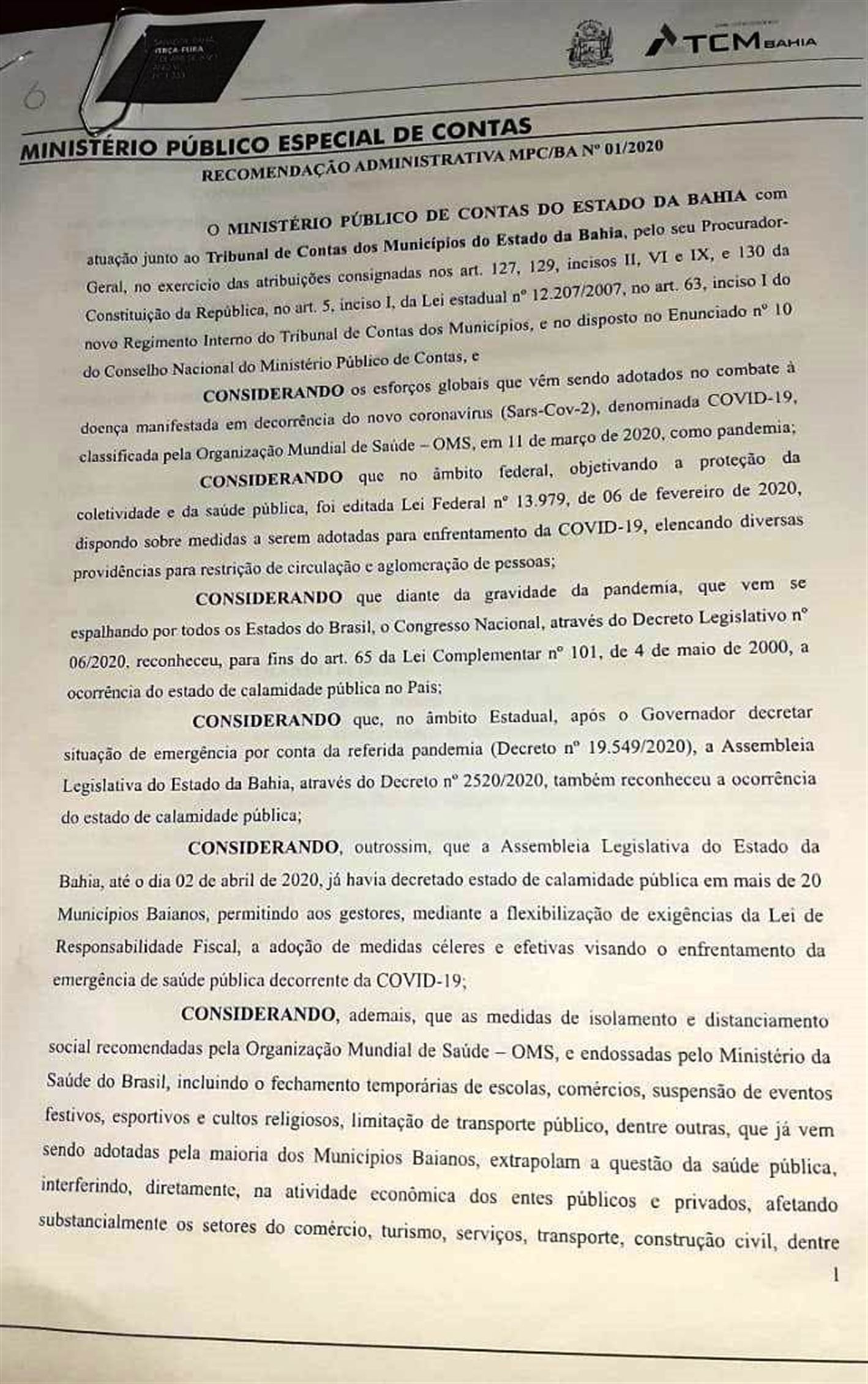 Confira nas imagens abaixo a íntegra do documento do TCM: