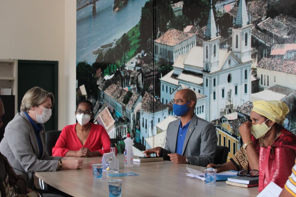 Nesta quarta-feira (25), a Prefeita Eliana Gonzaga reuniu-se com o Coordenador do Centro de Referência Étnico Racial, Major Thiago Garcez, e a Diretora de Direitos Humanos, Major Cleydi Milanezi, ambos da Superintendência de Prevenção à Violência da Secretaria de Segurança Pública do Estado, a liderança comunitária e Presidente da Associação de Mulheres Quilombolas do Tabuleiro da Vitória, Maria das Graças de Brito (Maria de Totó).