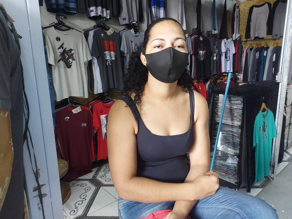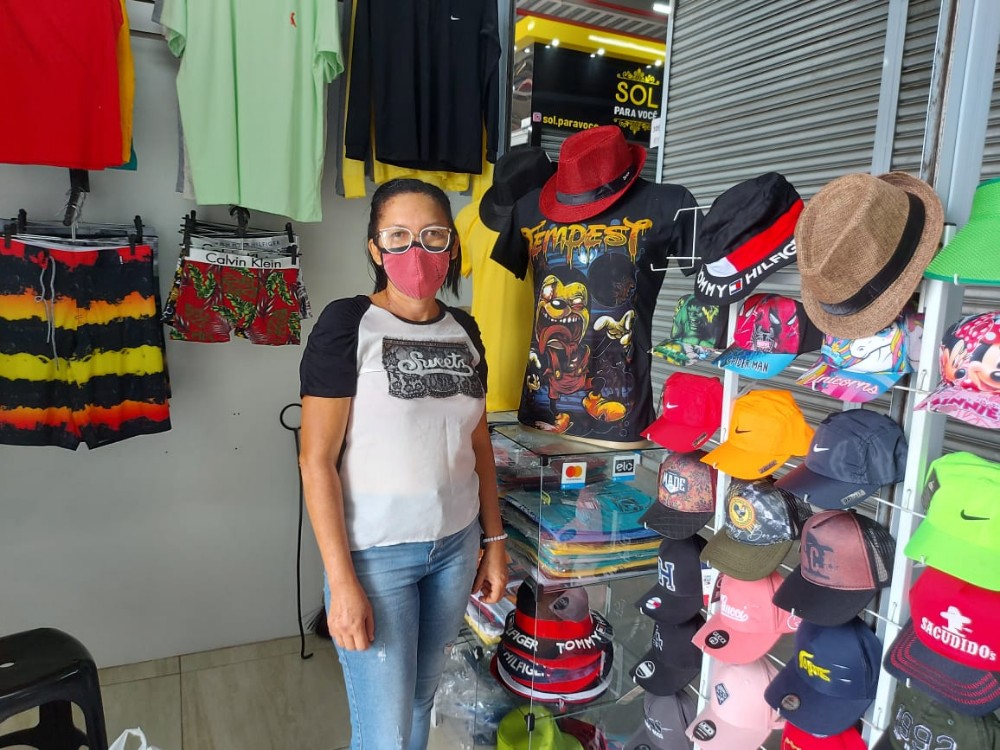 Nadiane dos Santos Felix, comerciante da Cidade das Compras, falou sobre o movimento. Segundo a comerciante, que vende acessórios para celular, brinquedos e roupas fitness, o movimento é muito fraco. “Minha salvação são os vizinhos que compram, mas a massa ainda não chegou aqui. Esperamos que o povo venha comprar com a gente”, disse.