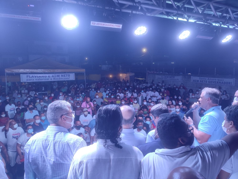 O ex-prefeito da cidade de Salvador e candidato a Governo do Estado pelo Democratas/União Brasil, ACM Neto, esteve na cidade de Santo Amaro da Purificação na noite desta quinta-feira (9). Ele foi lançar a sua candidatura na cidade. O candidato disse que esteve na Igreja Nossa Senhora da Purificação para pedir as bençãos. “Pedi que ela nos ilumine nessa caminhada”.