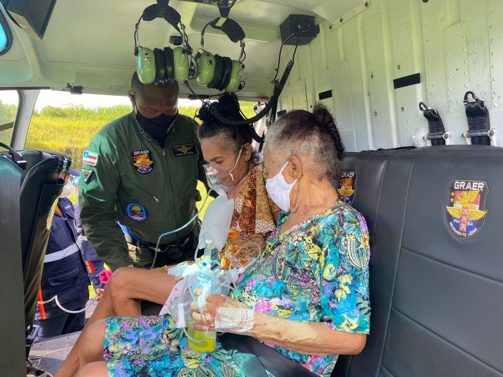 Idosas de 98, 90, 84 e 74 anos precisaram do auxílio do Grupamento Aéreo da Polícia Militar para receberem atendimento médico no primeiro dia do ano. Moradoras de Itabuna, um dos municípios prejudicados com as fortes chuvas nas últimas semanas, as quatro apresentaram insuficiência respiratória devido a síndrome gripal e fora levadas pelo helicóptero Guardião 1.